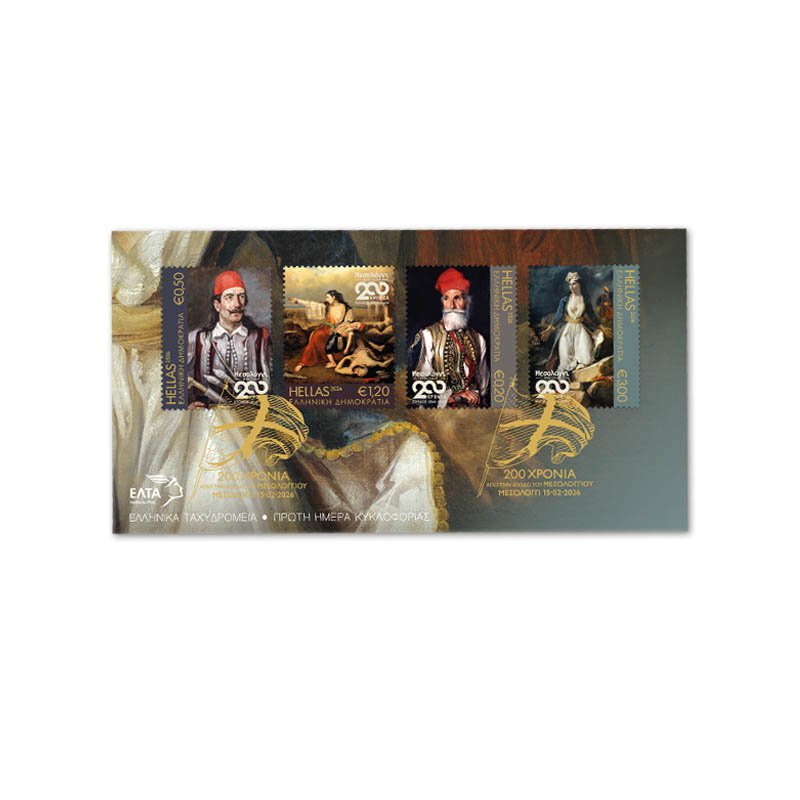 Τα Ελληνικά Ταχυδρομεία τιμούν τα 200 χρόνια από την Έξοδο του Μεσολογγίου και κυκλοφορούν στις 15 Φεβρουαρίου 2026 την Αναμνηστική Σειρά Γραμματοσήμων «200 Χρόνια από την Έξοδο του Μεσολογγίου», η οποία περιλαμβάνει τέσσερα γραμματόσημα και ένα αριθμημένο φεγιέ.
