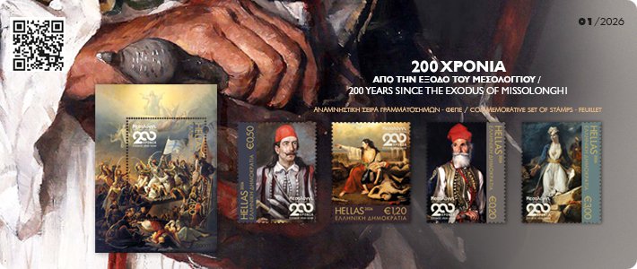 1/2026 Μονή Σειρά Γραμματοσήμων «200 Χρόνια από την Έξοδο του Μεσολογγίου» Κωδικός: 5205344172580 |