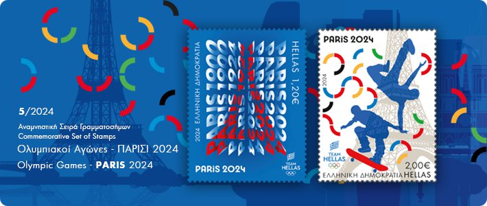 Τα Ελληνικά Ταχυδρομεία κυκλοφορούν στις 12 Ιουνίου 2024 την Αναμνηστική Σειρά Γραμματοσήμων «Ολυμπιακοί Αγώνες – Παρίσι 2024», που αναδεικνύει την ιστορική κληρονομιά της διοργανώτριας πόλης και τις πρωτοποριακές επιλογές στο αγωνιστικό ολυμπιακό πρόγραμμα.