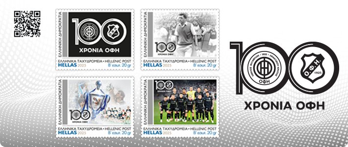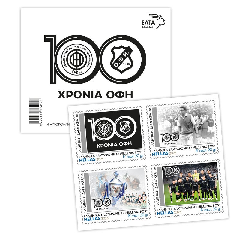 To mark the 100th anniversary of OFI’s founding, the Hellenic Post is releasing a special range of philatelic products. These collectible items, accompanied by a Commemorative Postmark, will be available starting Wednesday, December 10, 2025.
