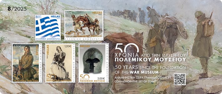 Hellenic Post circulates on September 22, 2025, the Commemorative Set of Stamps " 50 Years since the Foundation of the War Museum", which includes five stamps.