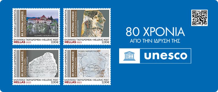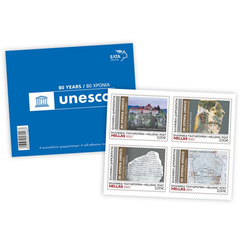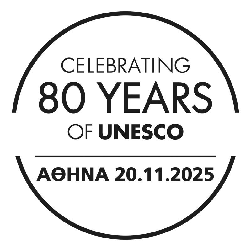 On the occasion of the 80th anniversary of UNESCO’s founding, Hellenic Post (ELTA) is issuing the following philatelic product, which will be available starting Thursday, 20 November 2025, and will be accompanied by a commemorative postmark.